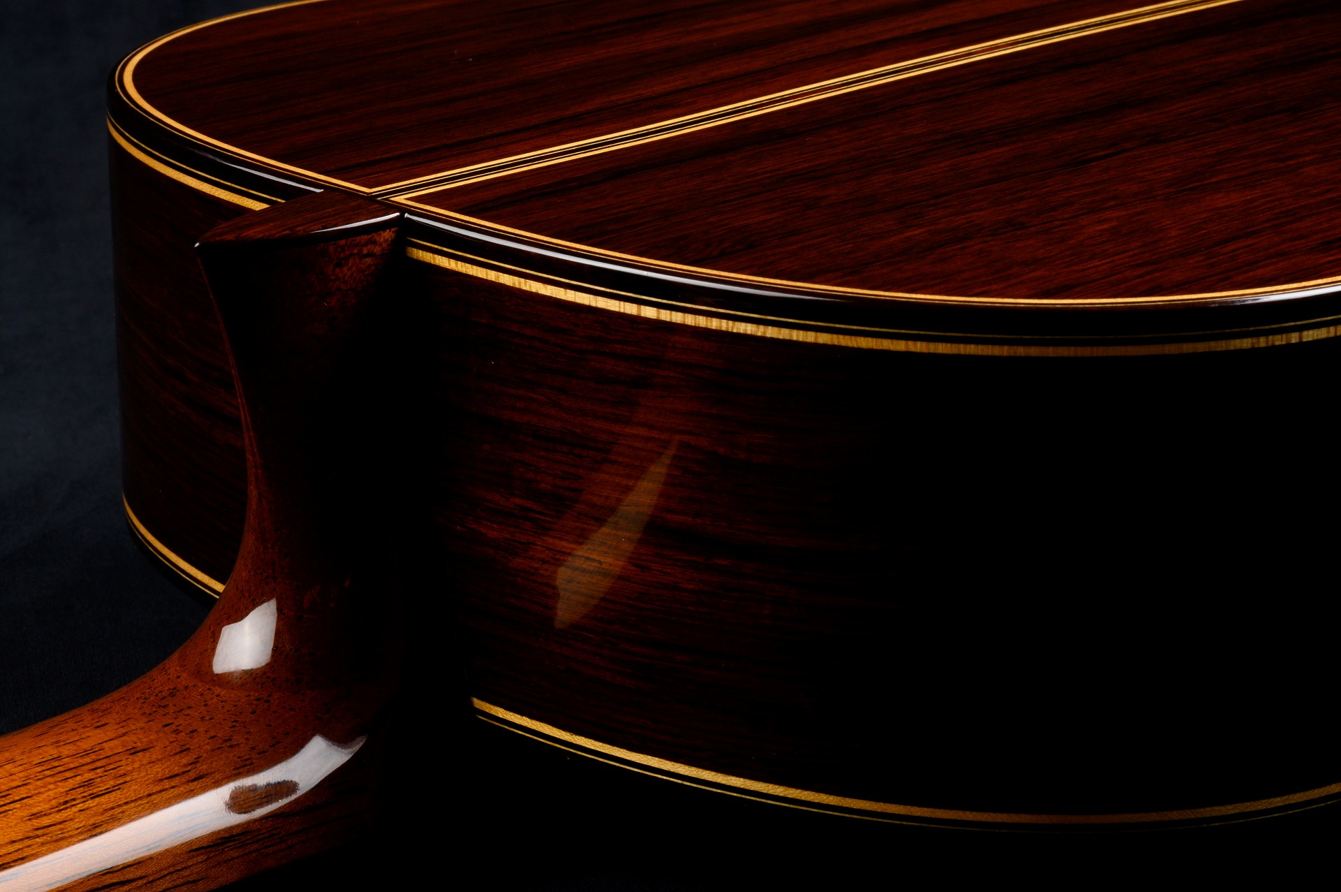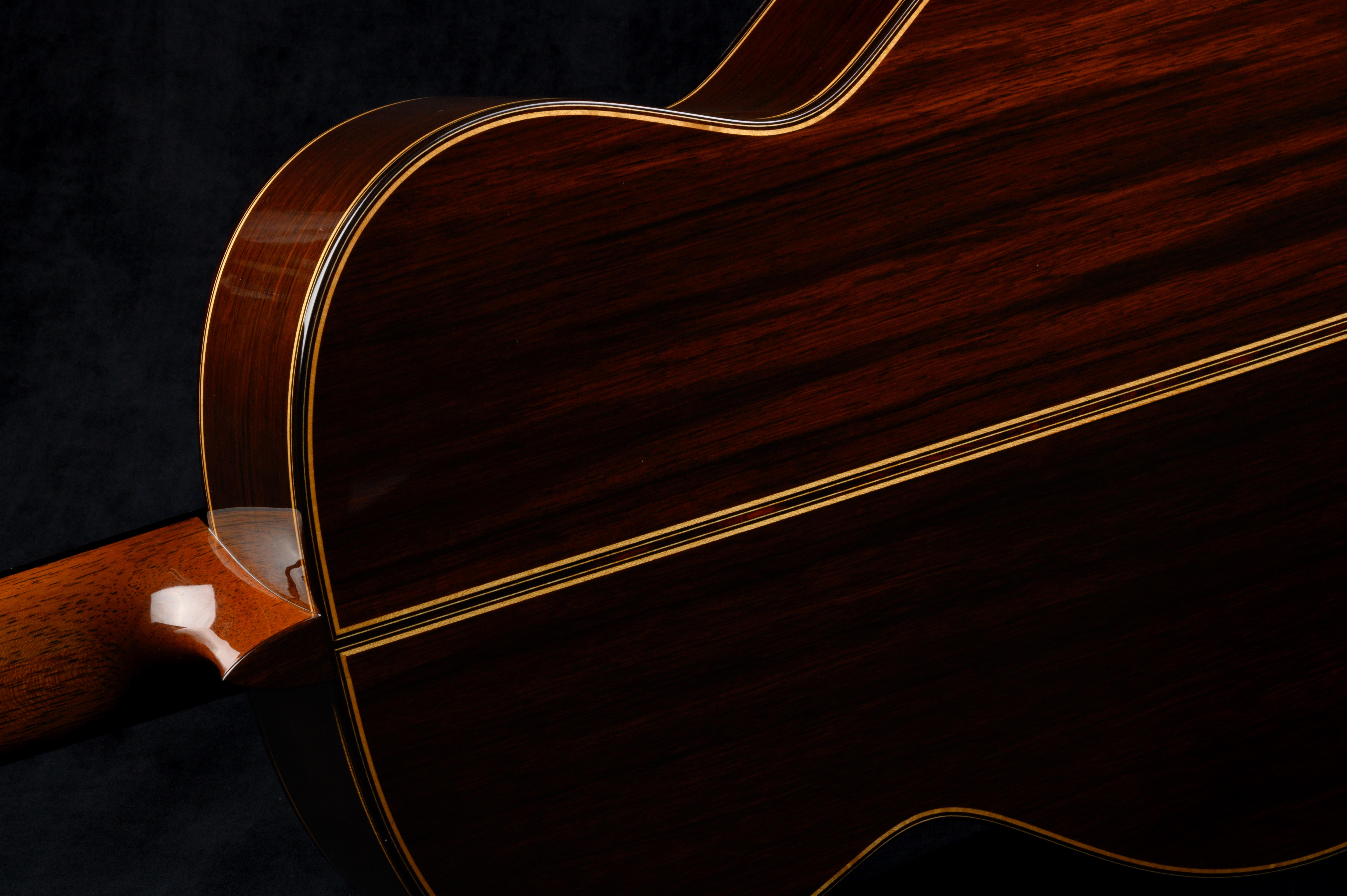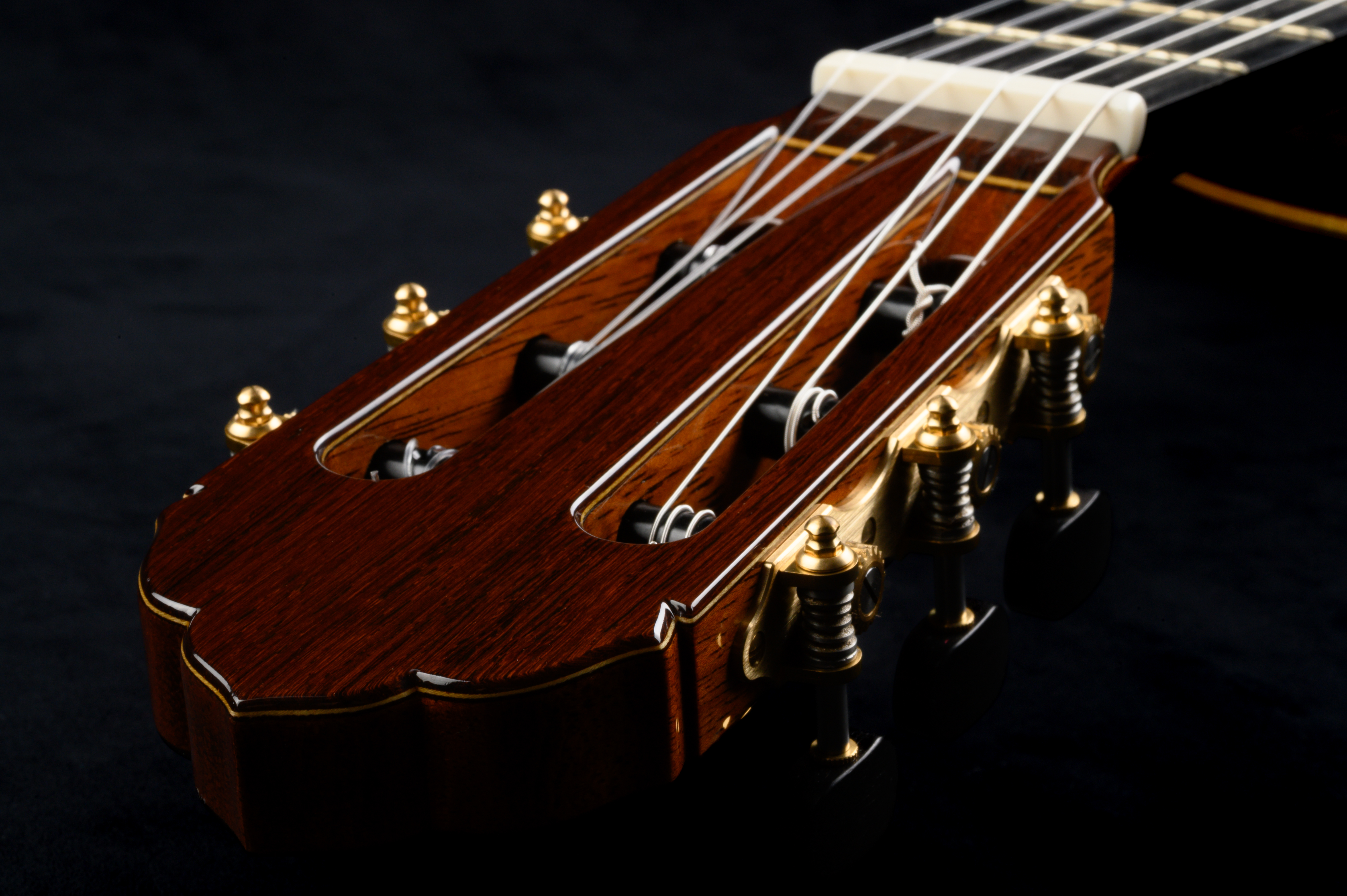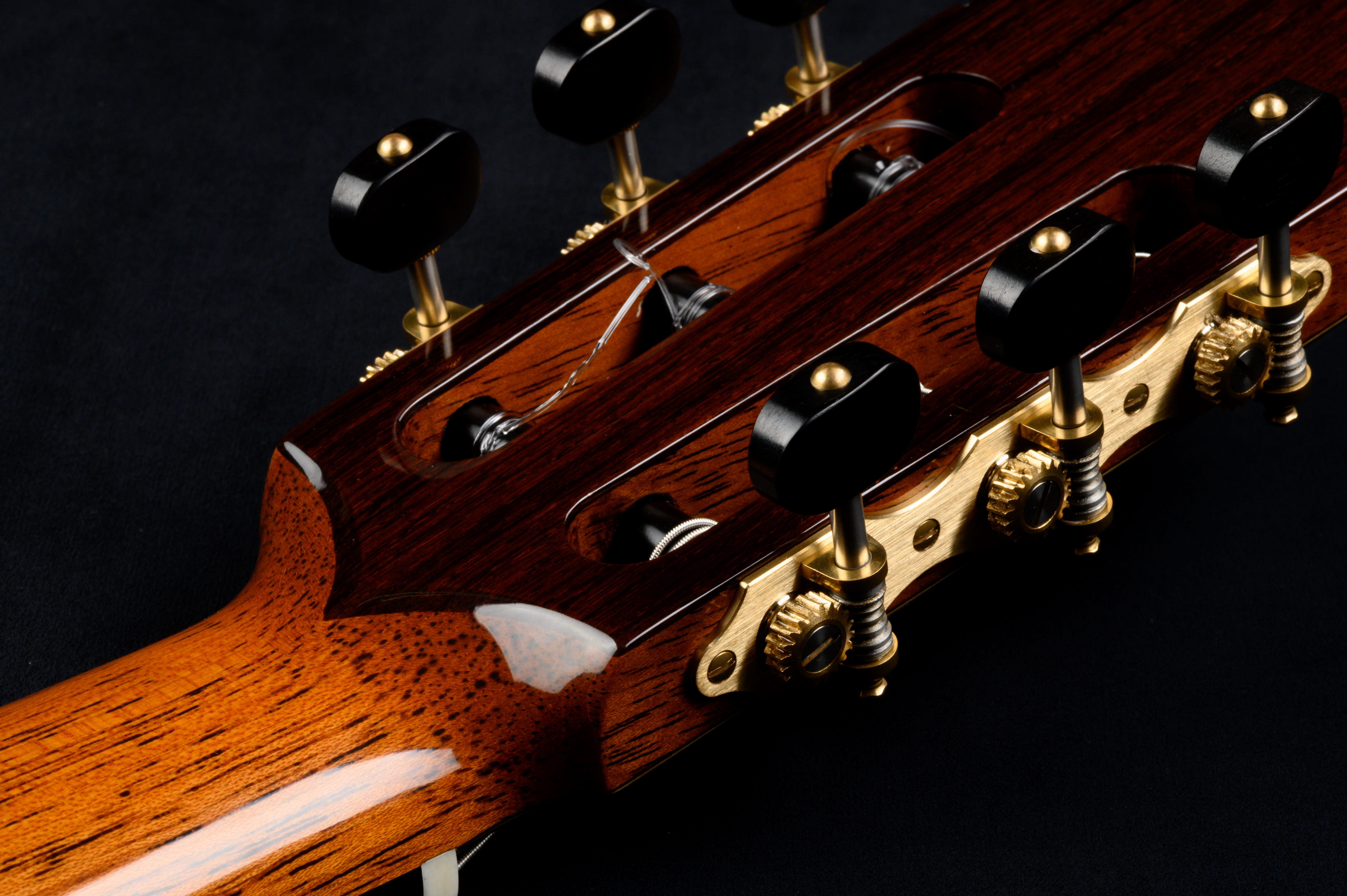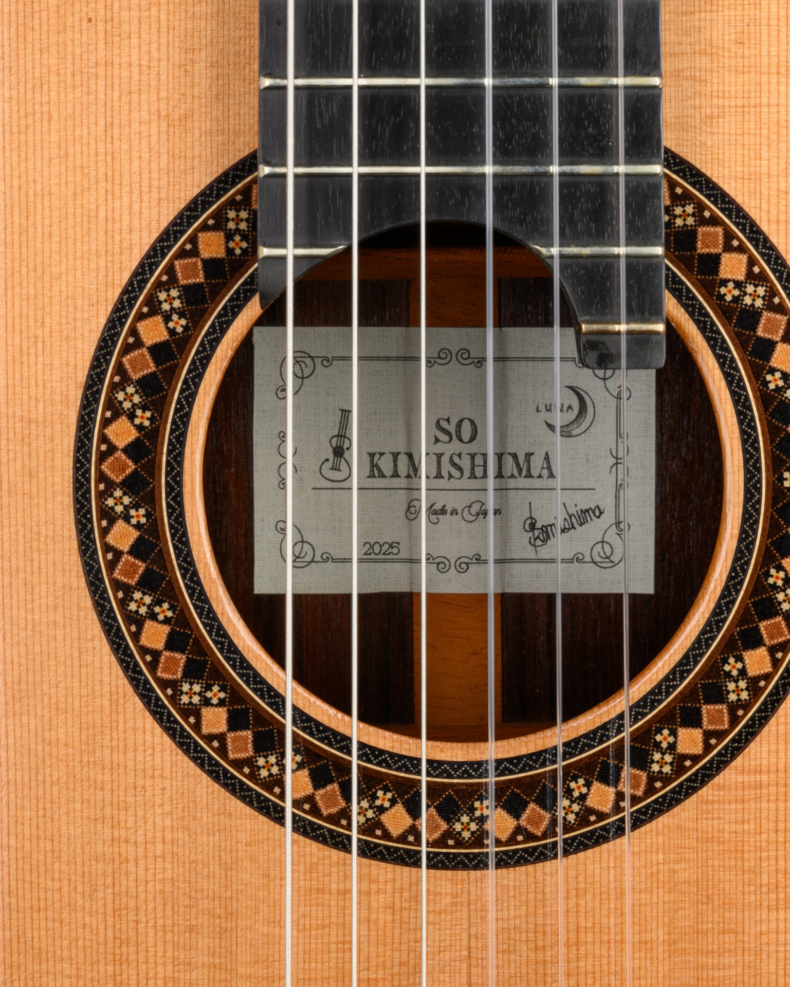 SOLから手作りロゼッタやヘッドのインレイなど、音に関係のないデザインの手間を省き、コストダウンを図ったモデルです。君島聡オリジナルの工夫が取り入れられています。