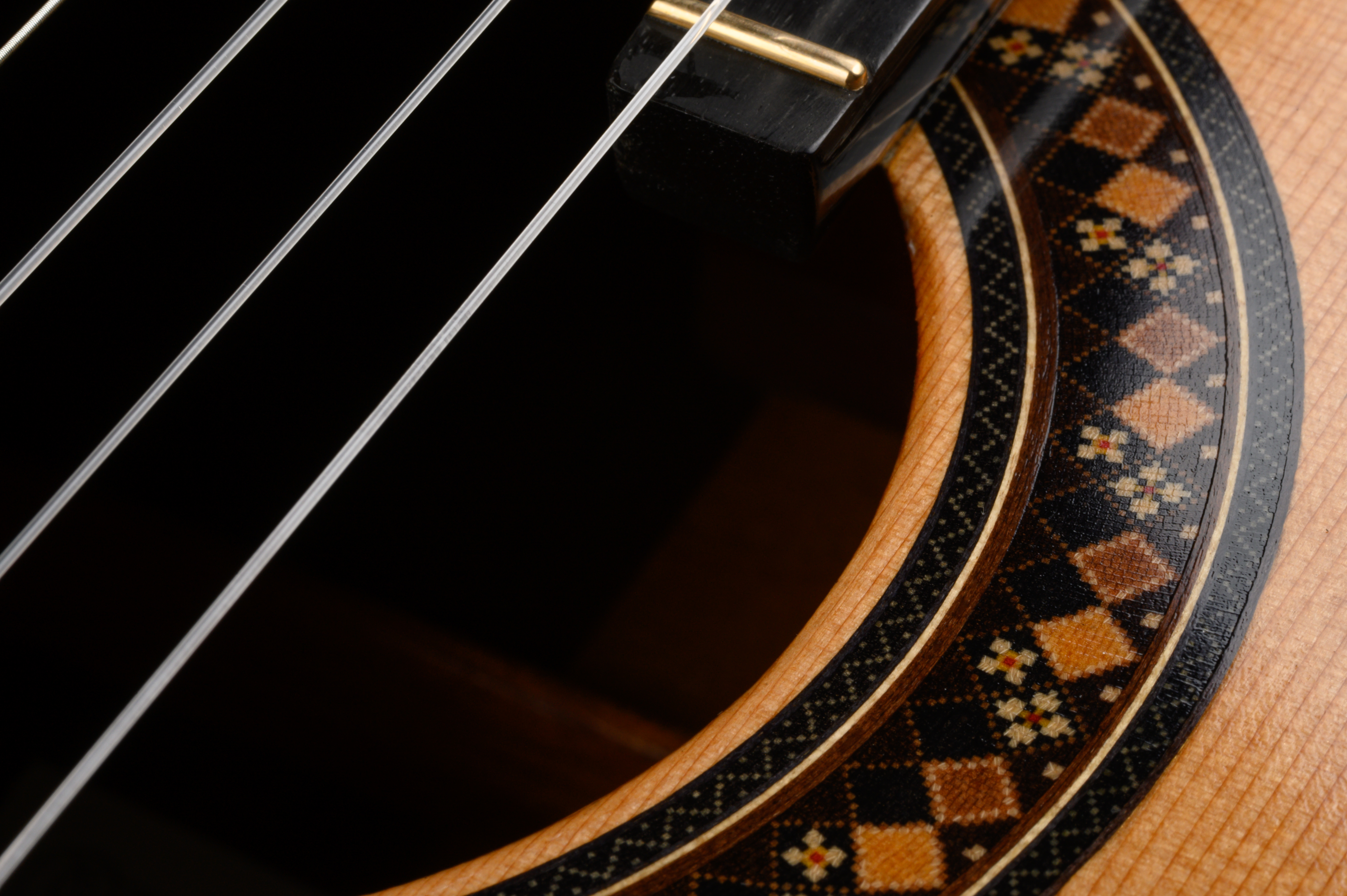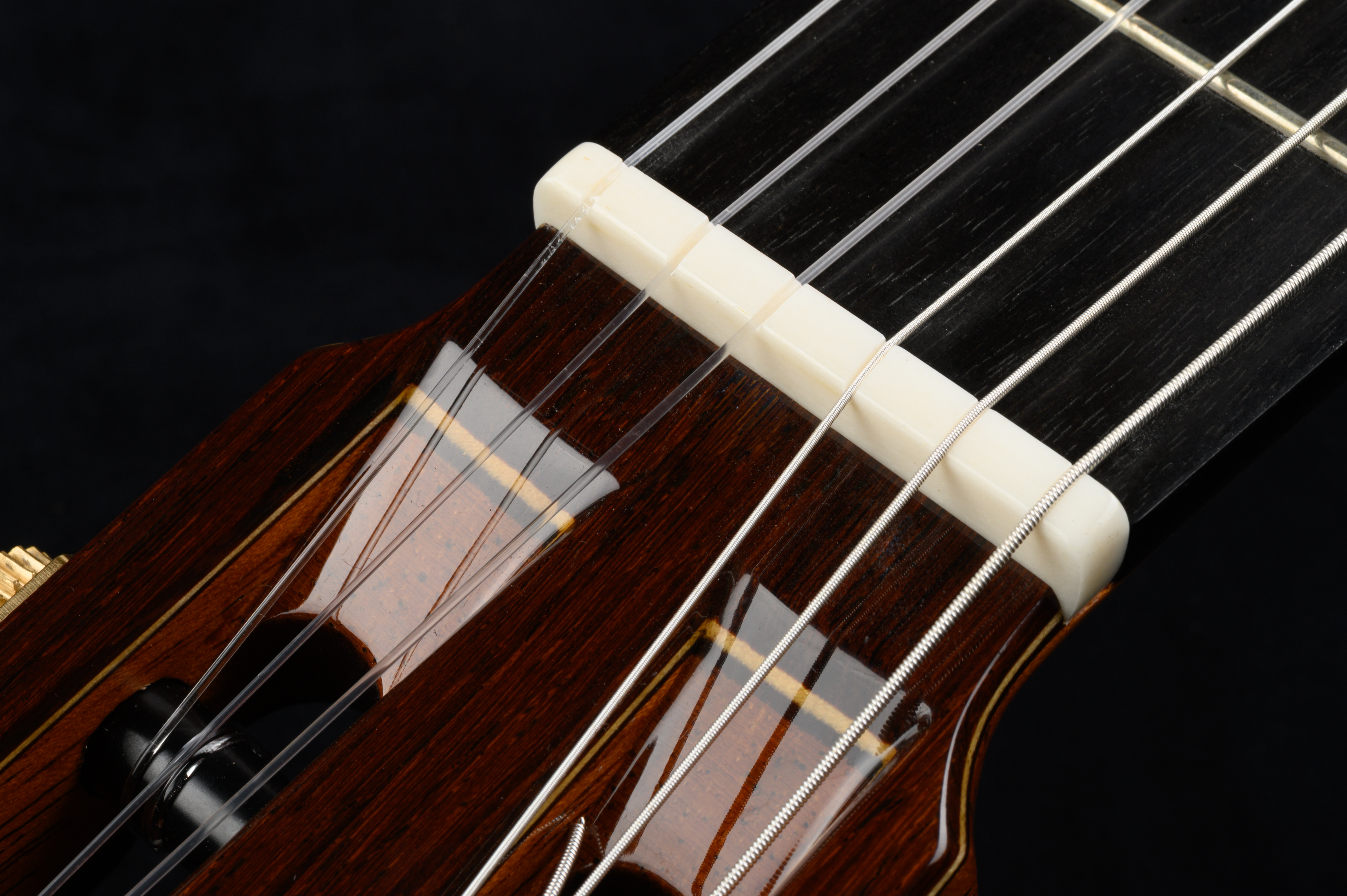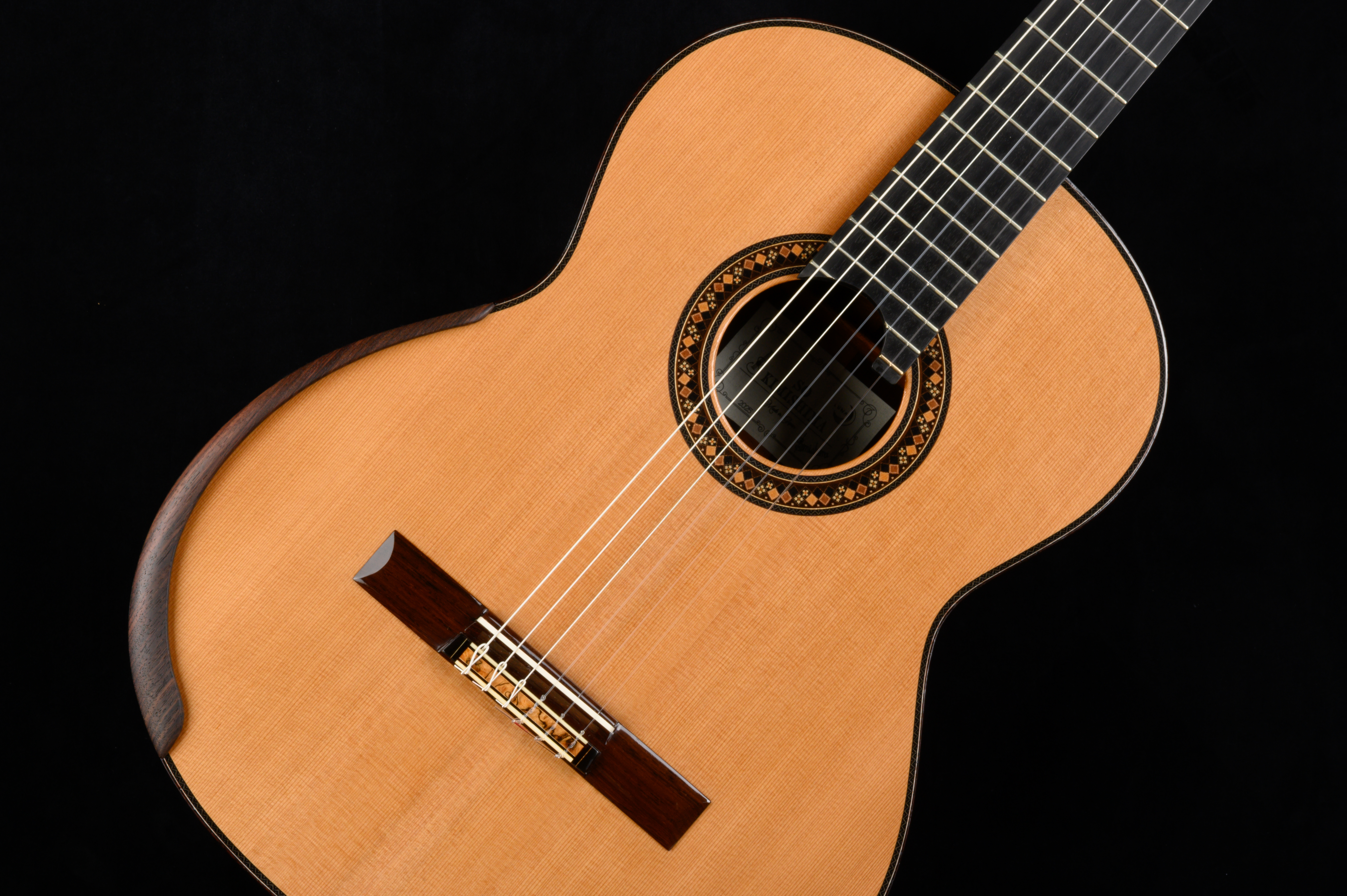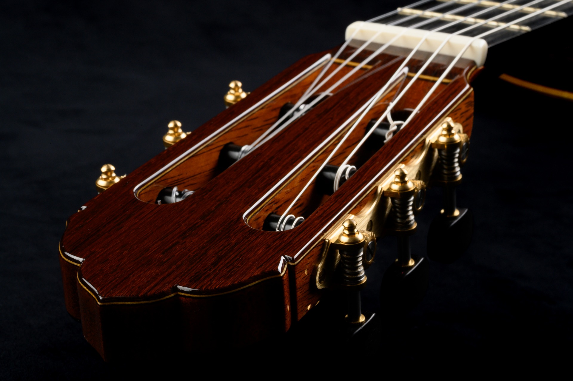 SOLから手作りロゼッタやヘッドのインレイなど、音に関係のないデザインの手間を省き、コストダウンを図ったモデルです。君島聡オリジナルの工夫が取り入れられています。