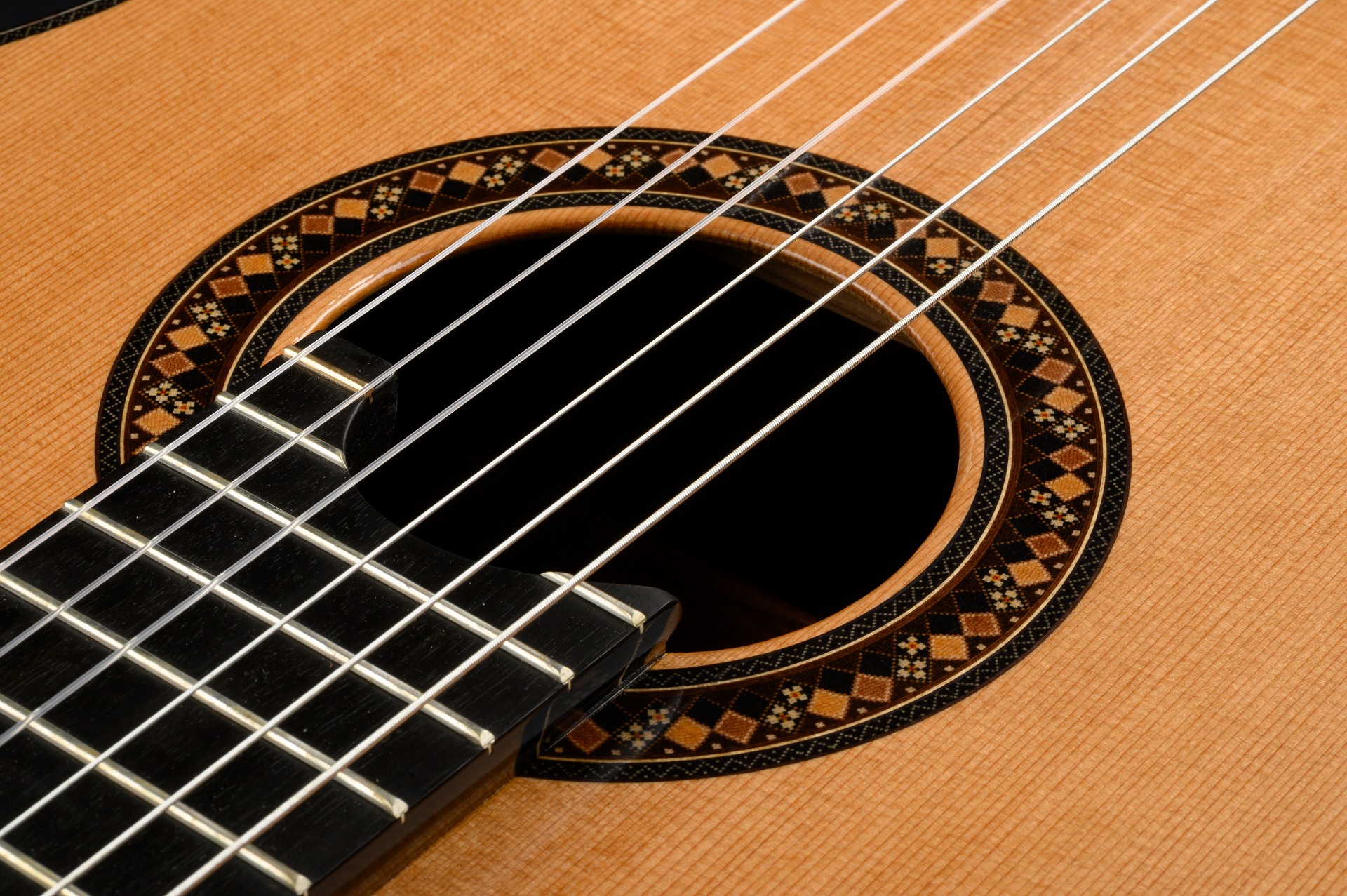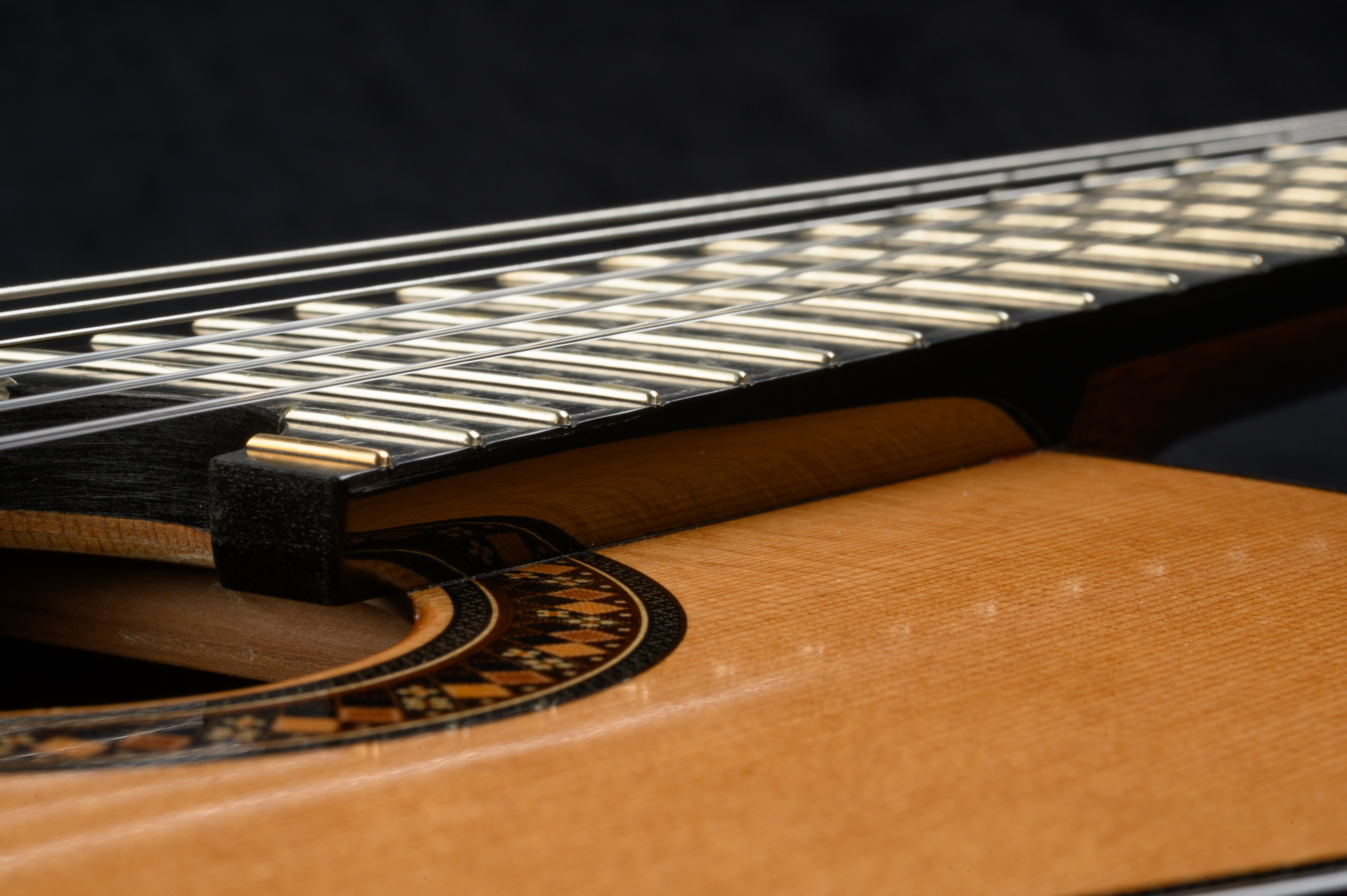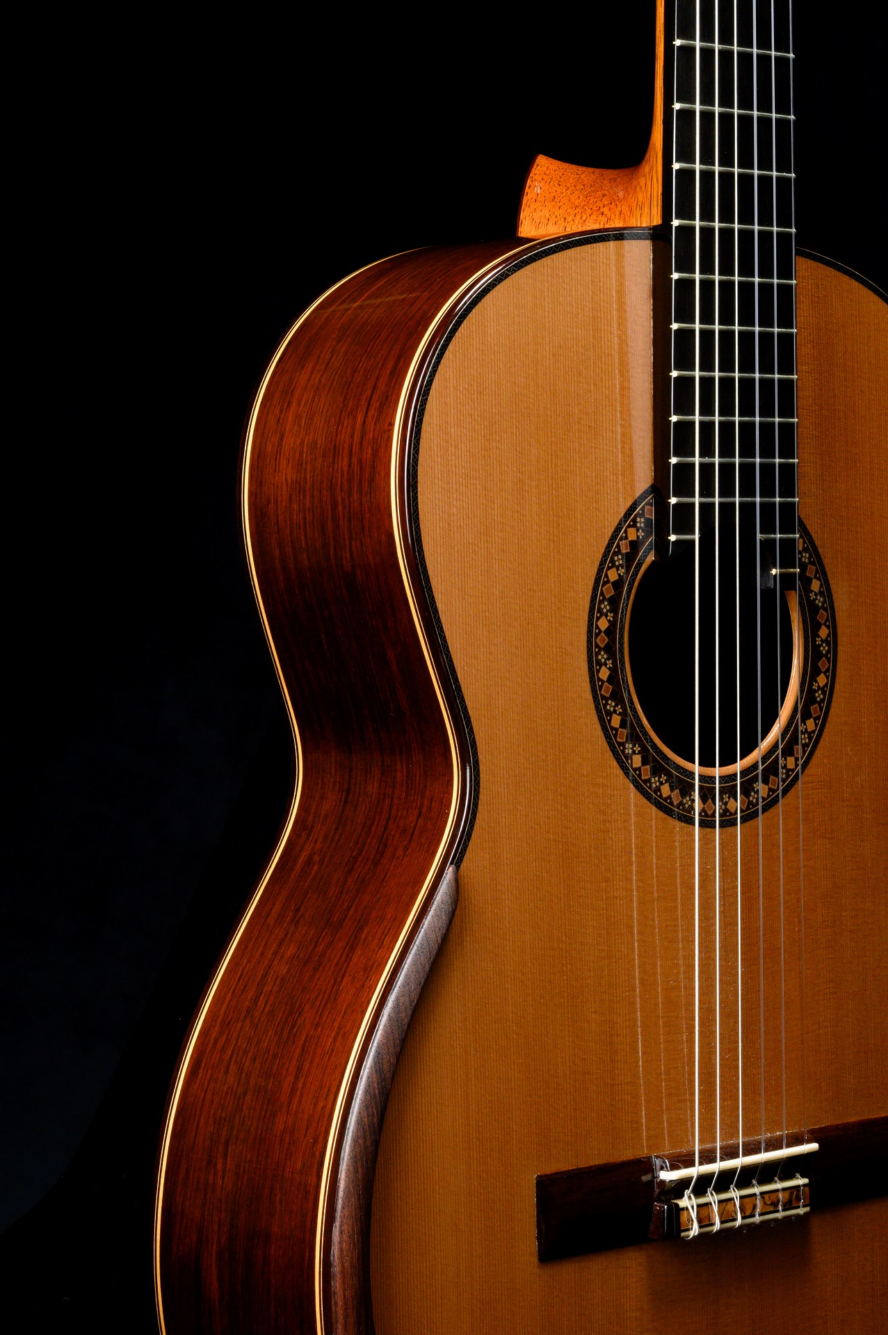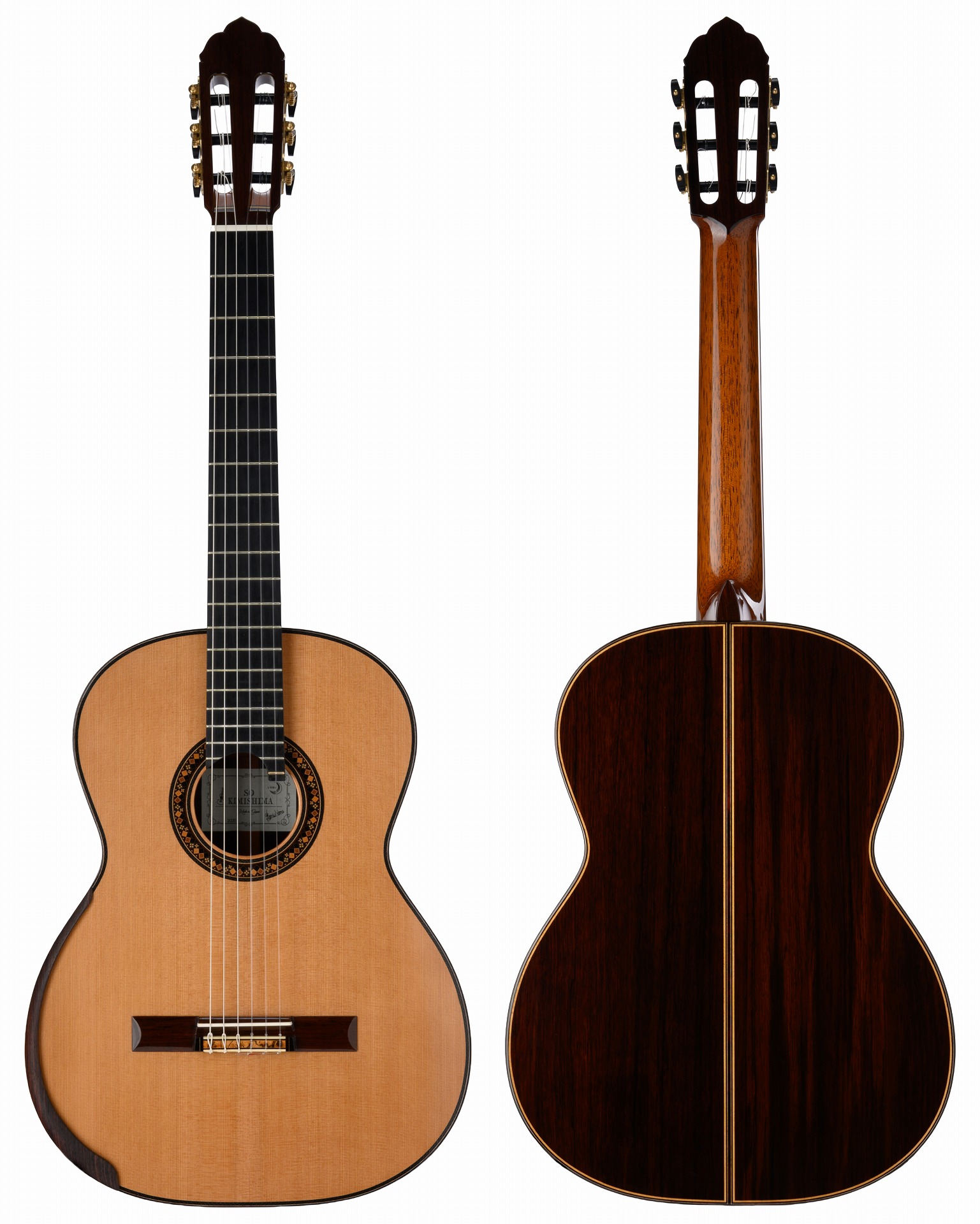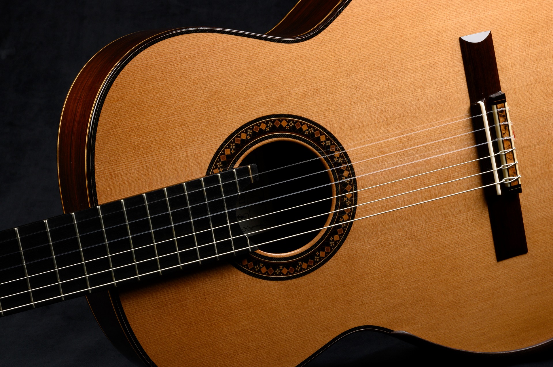 SOLから手作りロゼッタやヘッドのインレイなど、音に関係のないデザインの手間を省き、コストダウンを図ったモデルです。君島聡オリジナルの工夫が取り入れられています。