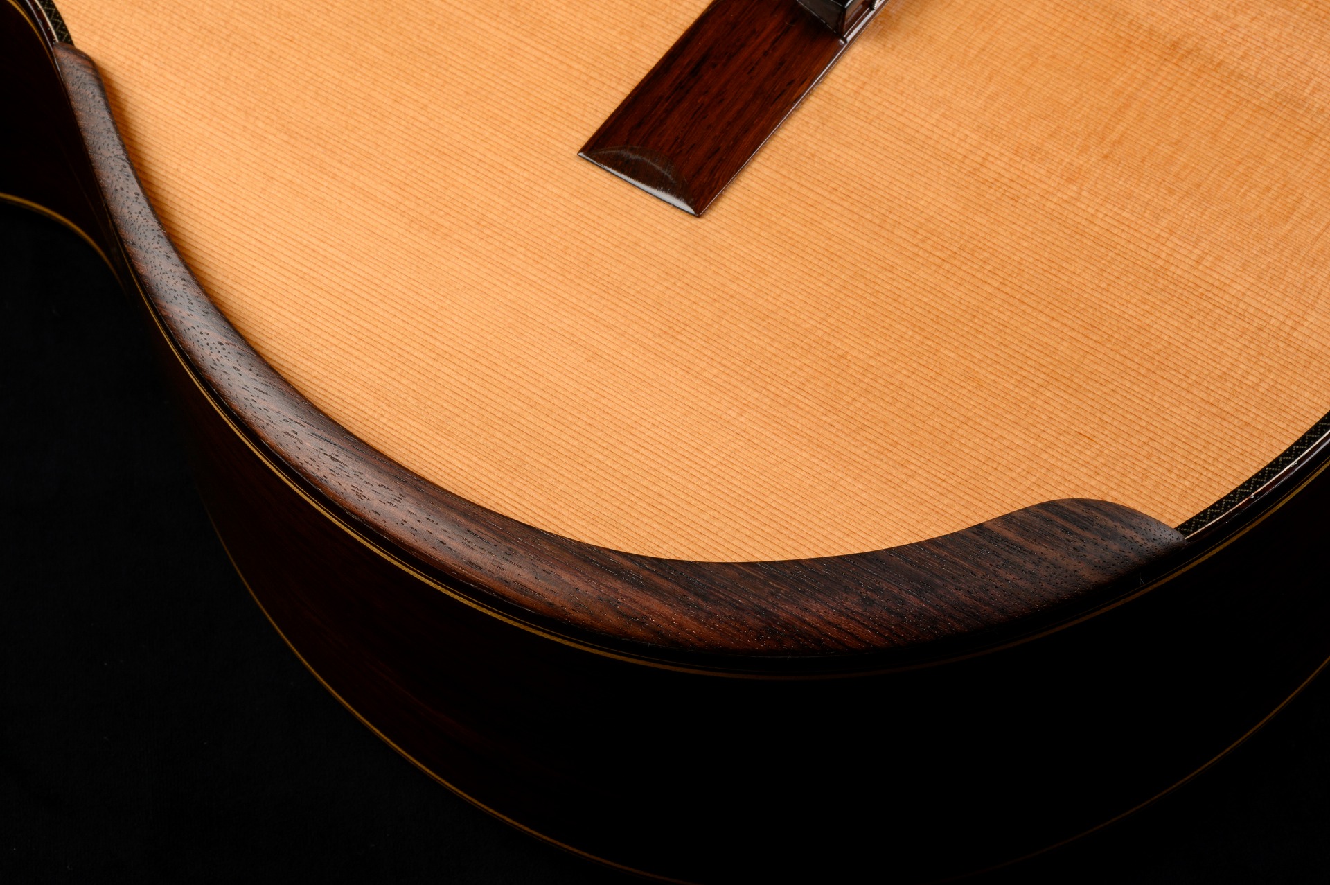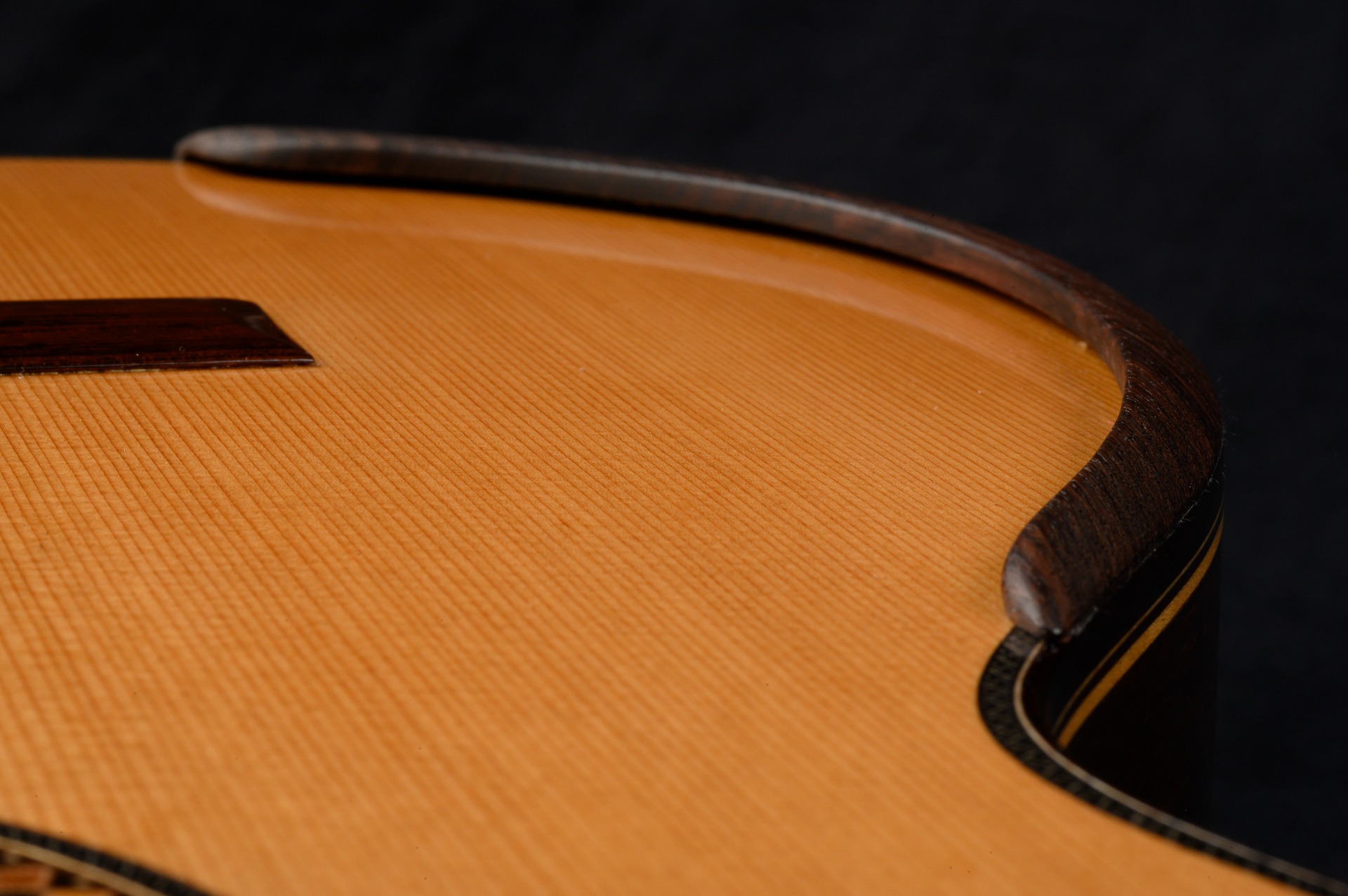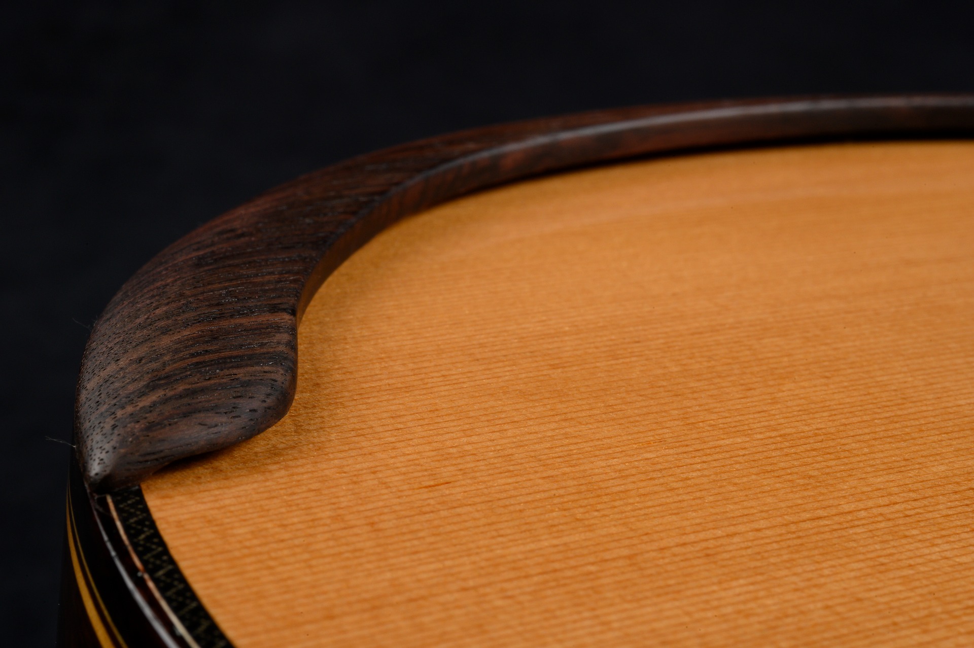 SOLから手作りロゼッタやヘッドのインレイなど、音に関係のないデザインの手間を省き、コストダウンを図ったモデルです。君島聡オリジナルの工夫が取り入れられています。 吉野杉、ミズメなどの和材やアームレストなどもオプションでお選びいただけます。